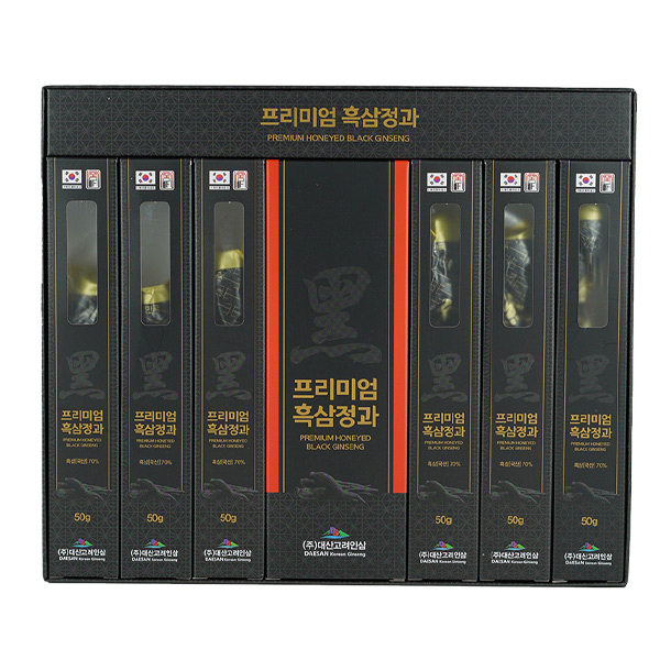 Hắc sâm củ tẩm mật ong Daesan là thực phẩm bổ dưỡng thượng hạng được làm từ 100 % hồng sâm 6 năm tuổi Hàn Quốc và mật ong rừng nguyên chất, sản xuất theo công nghệ tiên tiến, thành phẩm được chọn lọc kỹ càng từ những củ nhân sâm tươi trải qua 9 lần hấp sấy không những làm thay đổi màu sắc mà còn tăng hàm lượng Saponin giá trị dinh dưỡng có trong sâm.