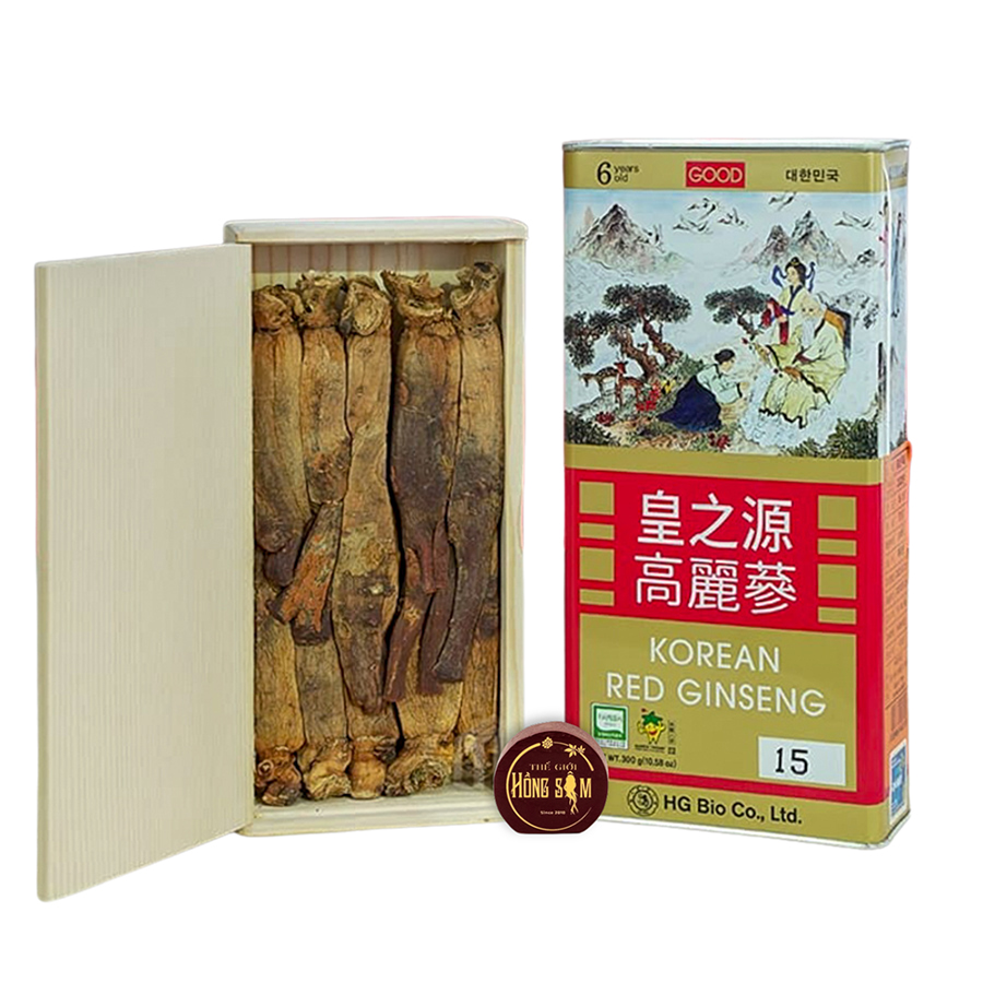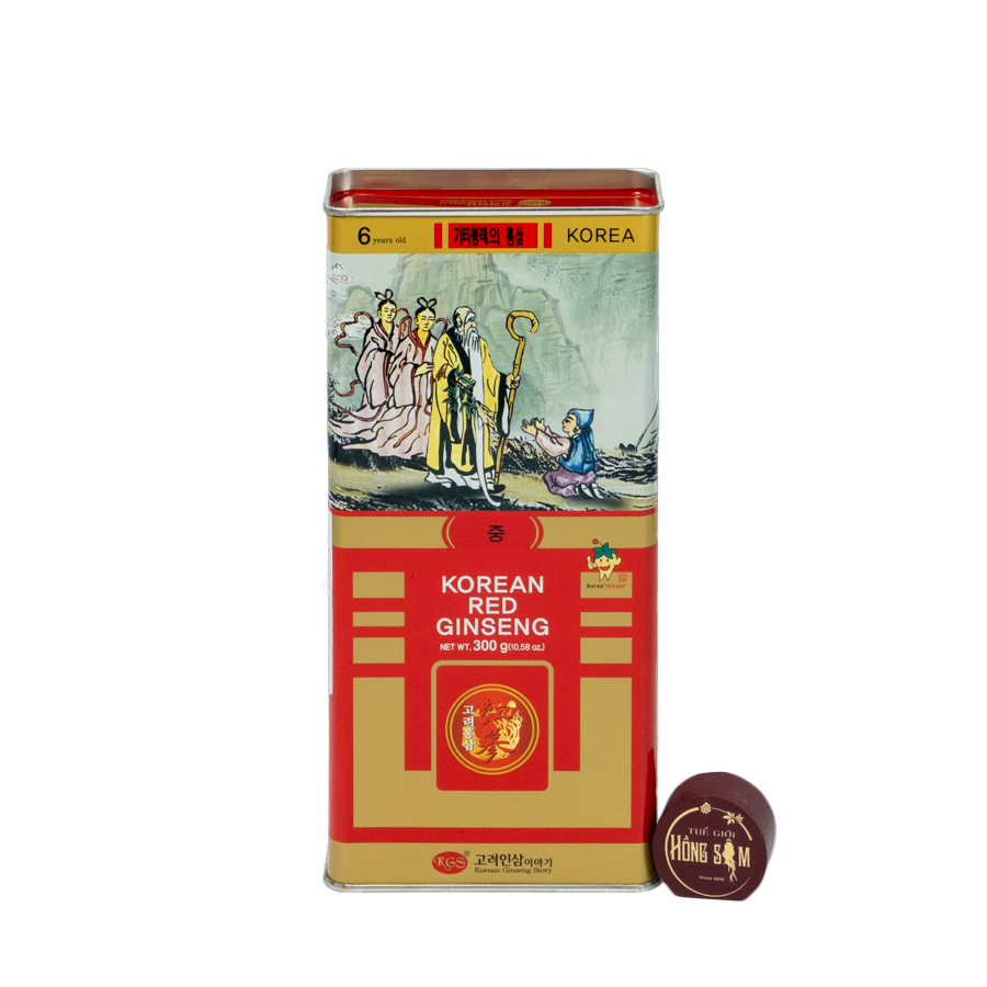 - Quy cách: Hồng Sâm Củ Khô KGS hộp thiếc 300g củ trung (21 - 30 củ)