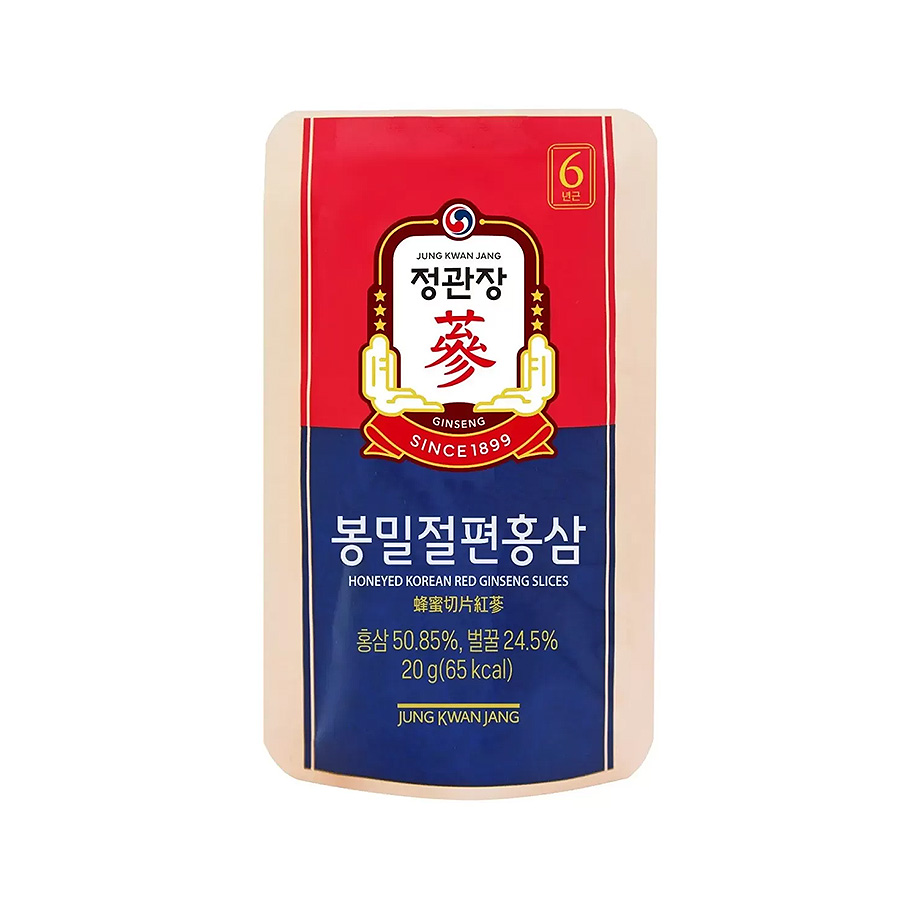 Hồng sâm lát tẩm mật ong là dòng sản phẩm tiêu biểu của nhà sản xuất KGC, được chế biến hoàn toàn từ những củ hồng sâm 6 năm tuổi Hàn Quốc chất lượng cao. Đem đến giá trị dinh dưỡng cao cho sức khỏe người tiêu dùng.