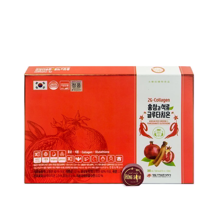 Tên sản phẩm: Nước Hồng Sâm Collagen Lựu Đỏ Hàn Quốc 2G-Glutathione Daedong