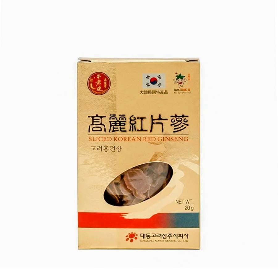 Hiểu rõ được nhu cầu của khách hàng khi mong muốn tìm kiếm một sản phẩm hồng sâm khô tiện lợi, dễ sử dụng mà vẫn giữ nguyên được vị sâm nguyên bản. Công ty nhân sâm Hàn Quốc Daedong Korean Ginseng đã cho ra đời sản phẩm Hồng sâm khô thái lát gói 20 gram. Là sản phẩm được bào chế từ nhân sâm quý hiếm của xứ sở kim chi, được chứng nhận mang đến rất nhiều công dụng hữu ích đối với sức khỏe.