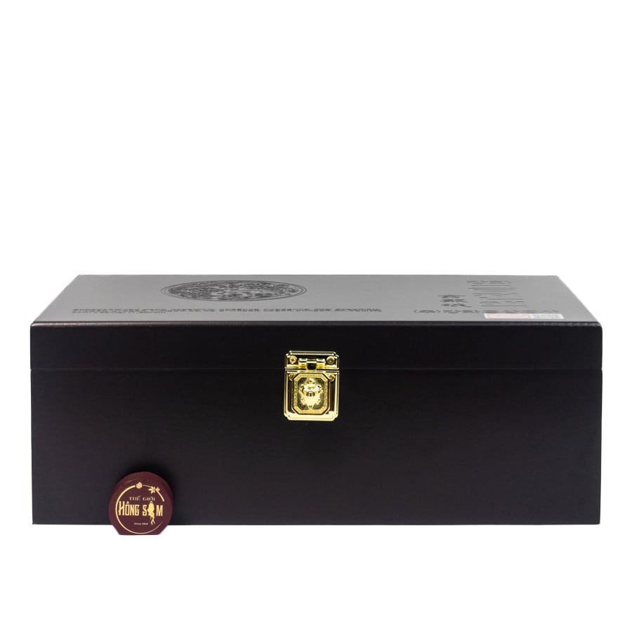 Bao bì: Hộp gỗ đen, khóa kim loại; ống thủy tinh chưa tinh chất.
