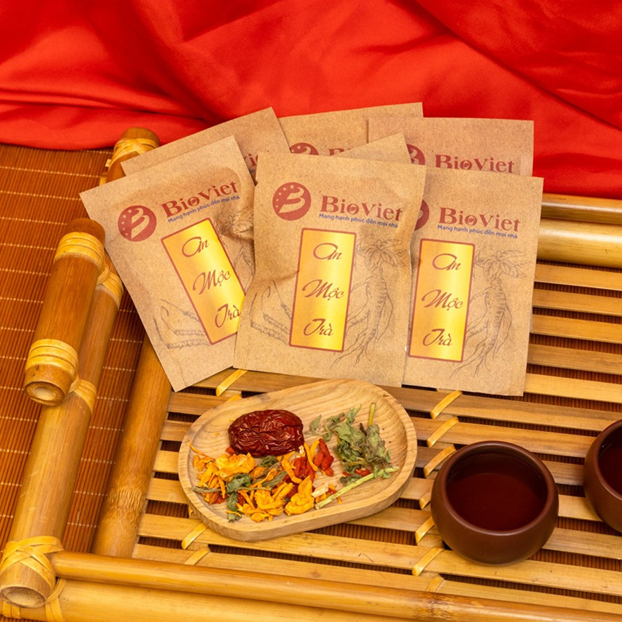 Chuẩn bị một gói Trà Dưỡng Nhan Đông Trùng Hạ Thảo Bio Việt.